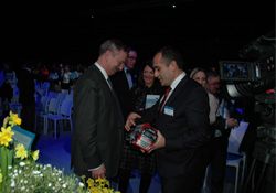 “Taşımacılık ve lojistiğin” önemini konu alan panelde AB Komisyonu üst düzey yetkililerinin yanı sıra Avrupa’nın lojistik sektörü temsilcileri de hazır bulundu. Panelde, AB Komisyonu Başkan Yrd. ve Ulaştırma Komiseri Siim Kallas ile bir araya gelme fırsatı bulan UND İcra Kurulu Başkanı Fatih Şener, Kallas’a Türk taşımacılık sektörünün sorunlarına dikkat çekmek için tekerliği eksik bir tır takdim etti.