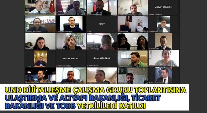 UND üyesi 87 firmadan 117 kişinin kayıtlı olduğu UND Dijitalleşme Çalışma Grubu toplantısı, Ulaştırma ve Altyapı Bakanlığı, Ticaret Bakanlığı ve Türkiye Odalar ve Borsalar Birliği (TOBB) yetkililerinin de katılımı ile "Geçiş Belgesi Ön Rezervasyon Sistemi Tanıtımı" gündemi ile 11 Nisan 2022 tarihinde Online olarak gerçekleştirildi.