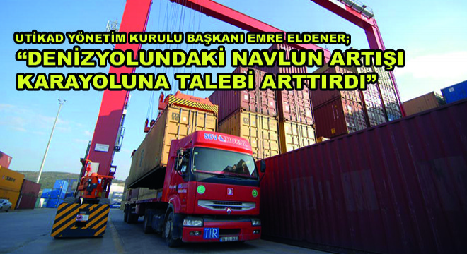 UTİKAD Yönetim Kurulu Başkanı Emre Eldener; denizyolu konteyner taşımacılığında Avrupa yönüne ihracat taşımalarında yaşanan navlun artışı nedeniyle, Avrupa yönlü konteyner taşıma taleplerinin karayoluna yöneldiği ve karayolu taşıma taleplerinin artmakta olduğunu dile getirdi ve konuyla ilgili alınması gereken önlemlerin altını çizdi.