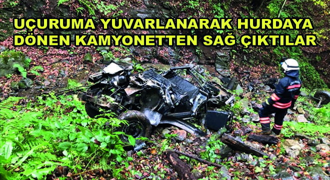 Edinilen bilgiye göre, Akçaabat ilçesinden Balıklı Yaylasına giden Ş.B. yönetimindeki 14 KN 709 plakalı kamyonet sürücüsünün henüz bilinmeyen nedenle direksiyon hakimiyetini kaybetmesi sonucu 400 metre uçuruma yuvarlandı. Kazayı gören çevredeki vatandaşlar durumu 112 acil çağrı merkezine bildirdi. İhbar üzerine kaza yerine itfaiye, ambulans ve jandarma ekipleri sevk edildi. Kaza yerine gelen ekipler uçuruma yuvarlanan kamyonete halat yardımı ile ulaştı. Uçurumdan aşağıya inen ekipler tarafından yapılan çalışmada motoru yerinden çıkarak hurdaya dönen kamyonet içerisindeki Ş.B. ve oğlu Ö.F.B. yaralı olarak bulundu. Yaralılar vatandaşların da yardımıyla halata bağlanan sedye ile yol kenarında bekleyen ambulans taşındı. Yapılan ilk müdahalenin ardından yaralılar hastaneye sevk edilirken, kazayla ilgili soruşturma sürüyor.