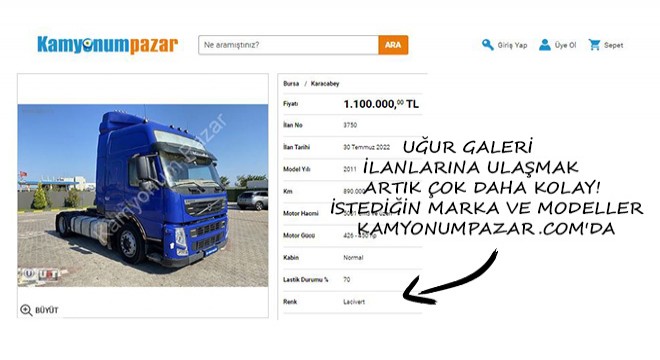 Uğur Galeri'nin ikinci el araçlarına ulaşmanın yolu kamyonumpazar.com!