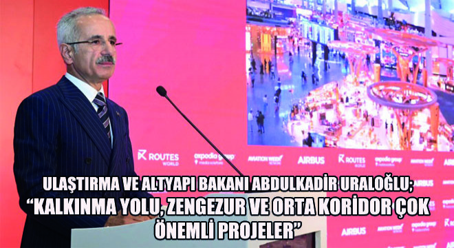 Bakan Uraloğlu, törende yaptığı konuşmasında, Türkiye'nin ulaşım ve iletişim stratejilerini küresel ve bölgesel şartlar göz önünde bulundurarak sürekli güncellediklerini belirtti. Özellikle son dönemde gündeme alınan projelerle ilgili bilgi veren Bakan Uraloğlu, “Zengezur Koridoru ve Kalkınma Yolu gibi projelerin Orta Koridor'a önemli bir katkı sağlayacak. Tarihte her zaman önemini sürdürmüş olan Türk Boğazlarının kontrolünü elinde tutan ülke olarak Akdeniz Havzası ve Karadeniz Havzasındaki ülkelerin deniz ulaşımı ve uluslararası ticaret faaliyetleri açısından da anahtar konumdadır. Tüm bunların yanında 4 saatlik uçuş süresiyle, yaklaşık 1,5 milyar insanın yaşadığı ve 10 trilyon dolar ticaret hacmi bulunan 67 ülkeye de ulaşabilmektedir. Konumumuzun getirdiği bu gerçeklerden hareketle ulaşım ve iletişim stratejilerimizi küresel ve bölgesel şartlar ışığında yeniden tanımlamak ve bu stratejileri her daim güncel tutmak Türkiye için vazgeçilmezdir. Bu noktada Cumhurbaşkanımız Sayın Recep Tayyip Erdoğan liderliğinde ulaşım ve iletişim alanında gerçekleştirilen yatırımlarla çehresi aydınlanan Türkiye’nin gelecek vizyonunu, dünyanın nabzını tutarak, teknolojik gelişmeleri yakından takip ederek ve daima entegrasyonu merkeze koyarak şekillendiriyoruz. Çünkü biliyoruz ki ulaştırma ağına yapılan yatırımlar, sadece ulusal değil uluslararası düzeyde hizmet verir. Bu farkındalığa sahip bir ülke olarak, son zamanlarda gündemimize aldığımız çok önemli projeler de mevcut. Örneğin, Türkiye ile Azerbaycan arasında doğrudan demiryolu ve kara yolu ulaşımı sağlayacak Zengezur Koridoru! Bu bağlantının hayata geçmesinin tüm Orta Koridor ülkeleri açısından önemli bir adım olacağına inanıyorum” dedi.