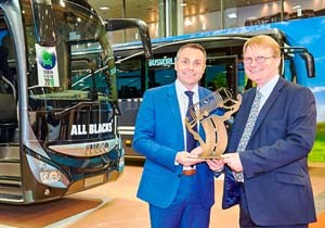 Oyunu Iveco Magelys’den yana kullanan Avrupa otobüs medyasından 22 gazetecinin yer aldığı jürinin başkanı, Stuart Jones, “Uluslararası Yılın Otobüsü 2016” ödülünü Iveco Bus başkanı Sylvain Blaise’ye Kortrijk’deki Busworld Fuarında yer alan Iveco standında verdi.