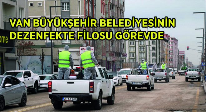 Dünyada hızla yayılan korona virüs tehdidini ortadan kaldırmak için önlemlerini artıran Van Büyükşehir Belediyesi, dezenfeksiyon çalışmalarını aralıksız sürdürüyor. Van Valisi ve Büyükşehir Belediyesi Başkan Vekili Mehmet Emin Bilmez’in talimatları doğrultusunda 17 araçlık dezenfeksiyon filosu kuruldu. Daha önce ibadethanelerden okullara, parklardan toplu taşıma araçlarına kadar dezenfekte işinde görev alan ekipler, son günlerde cadde ve sokakların virüslerden arındırılması için çaba sarf ediyor.