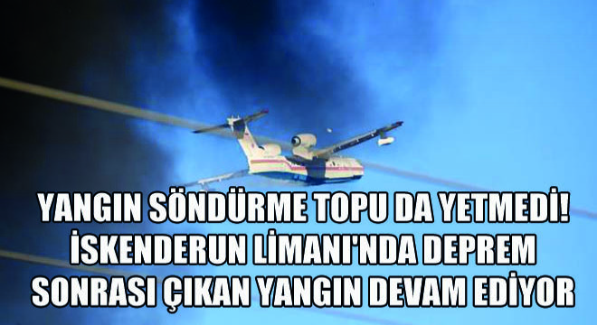 Yangından yükselen dumanlar, İskenderun ilçesinin birçok noktasından görülüyor. Limandaki konteynerlerde 6 Şubat'ta çıkan yangına dün Kara Kuvvetlerinin helikopterleri ile Hava Kuvvetlerinin uçağı müdahale etmiş ve uçaktan alevlere "yangın söndürme topu" da atılmıştı.