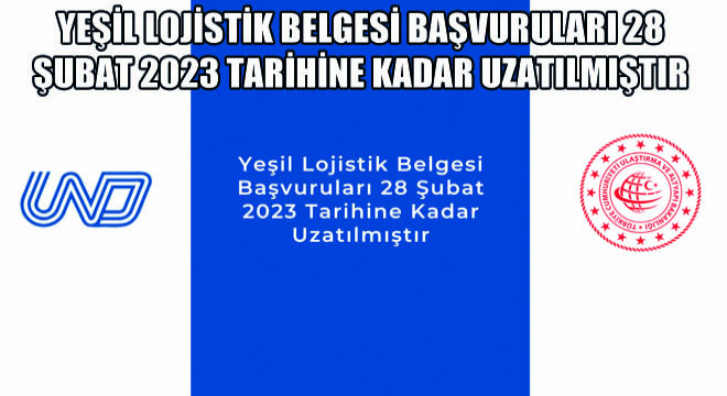 Bu nedenle, yaşanacak sorunların ve mağduriyetlerin önceden önlenmesi bakımından yeşil lojistik belgesi başvuru süresinin 28 Şubat 2023 tarihine kadar uzatılması Ulaştırma ve Altyapı Bakanlığınca uygun görüldü.