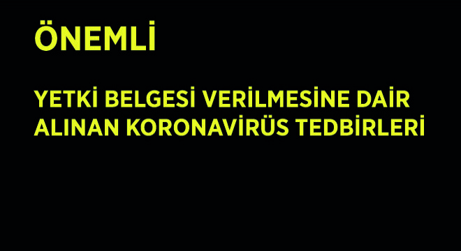 "Ulaştırma Hizmetleri Düzenleme Genel Müdürlüğü tarafından koronavirüsün (COVID-19) yayılımının önlenmesi ve vatandaşlara etkisinin en aza indirilmesini teminen; 03.04.2020 tarihi saat 23:59'dan başlamak üzere, 4925 sayılı Karayolu Taşıma Kanunu ve Karayolu Taşıma Yönetmeliği çerçevesinde ilk defa yetki belgesi verilmesinin ve yetki belgesi eki taşıt belgelerine taşıt ilave işlemlerinin ikinci bir talimata karar durdurulduğu ifade edilmektedir.