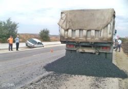 80 kilometre hızla giderken önünde ilerleyen kamyonun arka kapağının açıldığını belirten Serkan Topçu, "Yola sıcak asfalt döküldü. Kontrolü kaybedince önümdeki otomobile, diğer otomobilde onun önündekine çarptı" dedi. Kazaya karışan otomobiller çekici yardımıyla yoldan kaldırılırken, temizlenen yol 30 dakika sonra ulaşıma açıldı.