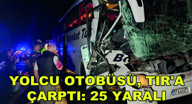 Düzce'de, Anadolu Otoyolu'nda yolcu otobüsünün TIR'a çarptığı kazada 25 kişi yaralandı.