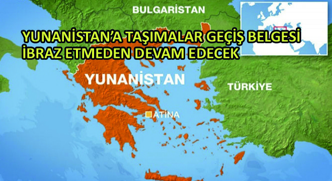 Bu çerçevede, Bakanlığımızın yoğun girişimleri sonucu Yunanistan’a gerçekleştirilecek olan taşımalarda geçiş belgesi ibraz etmeden taşımaların devam etmesine imkan tanınmıştır."