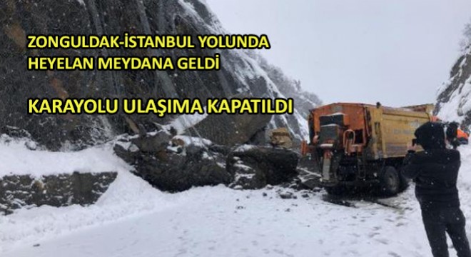 Zonguldak-İstanbul yolunda meydana gelen heyelanda dev kayalar yola düştü. Kayalar nedeniyle İstanbul istikameti ulaşıma kapatılırken, araçlar alternatif yollara yönlendirildi. Heyelan anında bazı kaya parçalarının üzerine düştüğü kar küreme aracının sürücüsü yaralanarak hastaneye kaldırıldı. Ekiplerin heyelanın yaşandığı yerde temizleme çalışmaları başlatacak.